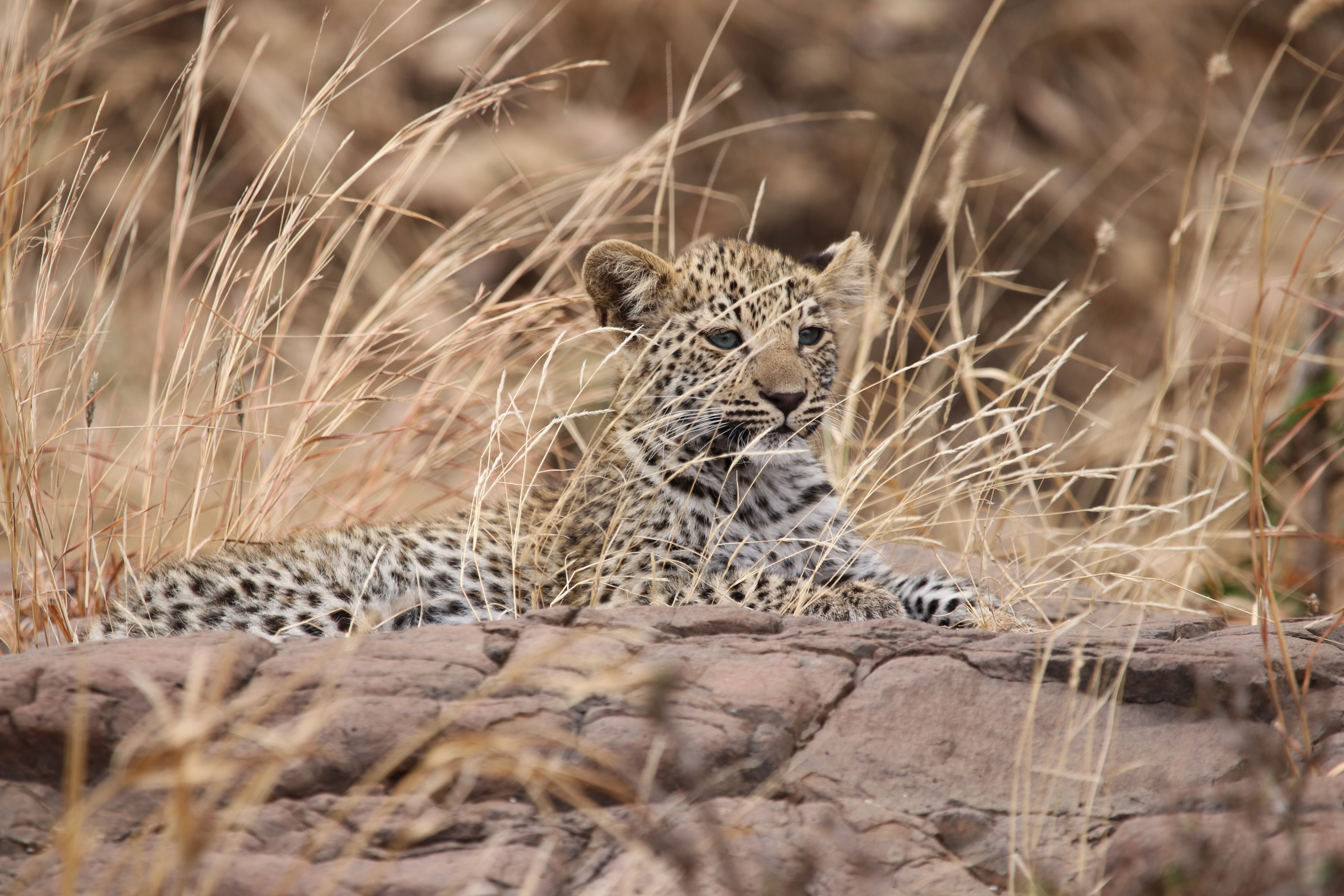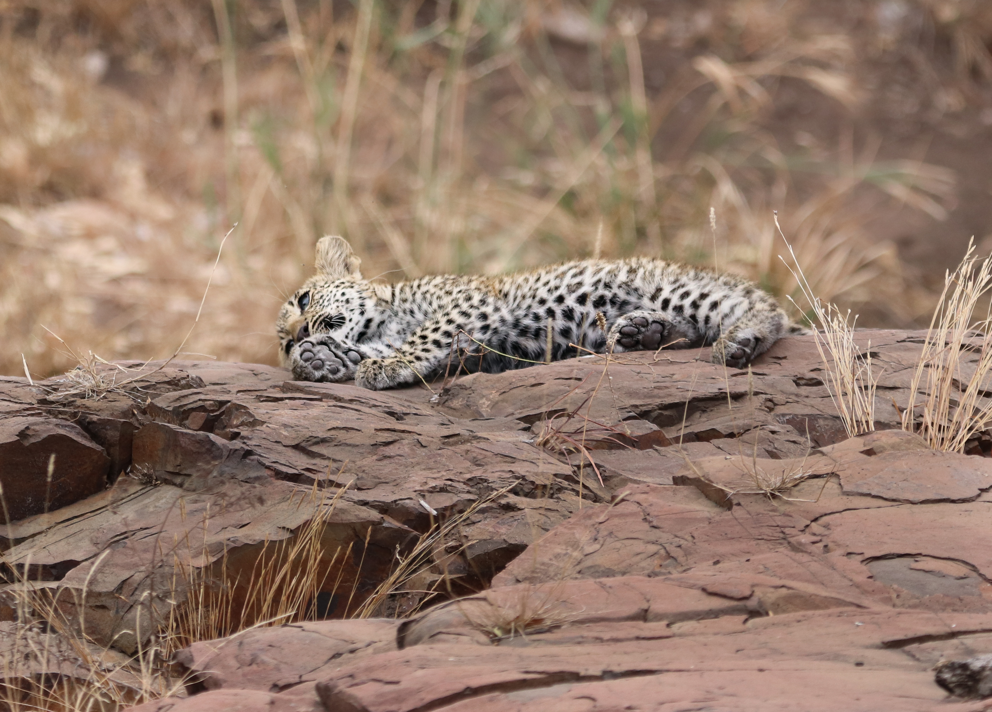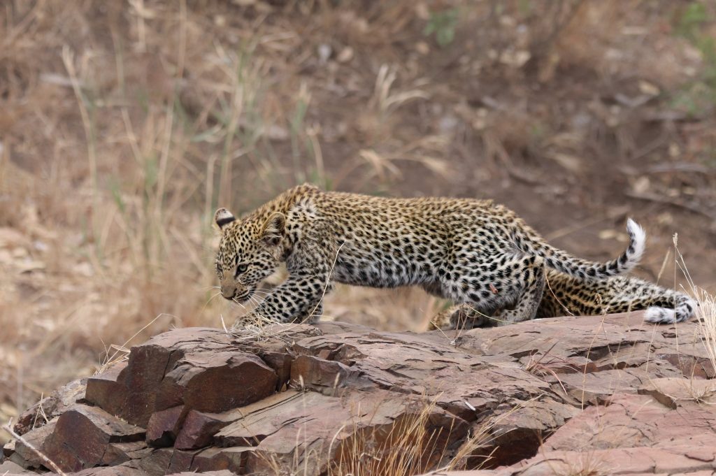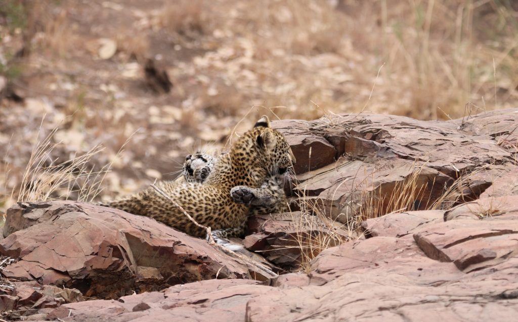 Can you believe it! Right there in front of us. Lounging on the rocks, in full view . Two gorgeous, immaculate, PERFECT little leopard cubs. At this point, I’m completely blown away by the urgency in which Kruger has delivered my sightings request. It then dawns on me that I haven’t yet attached the ‘big’ lens to my camera… Anyway, it didn’t even matter because the cubs were not perturbed by our presence in the slightest. They made no attempt to hide away. I snapped a few pics with my the smaller lens whilst Nic located the larger lens for me. I tired to attach it but my shaky adrenaline fingers would not quite co-operate. Trusty Nic took over, attaching the lens in record time. I had not used the camera before (apart from a few halfhearted snaps of a noisy rock thrush in the garden at home). It was all a bit chaotic from a photographic point of view, but my goodness, what an incredible sighting .